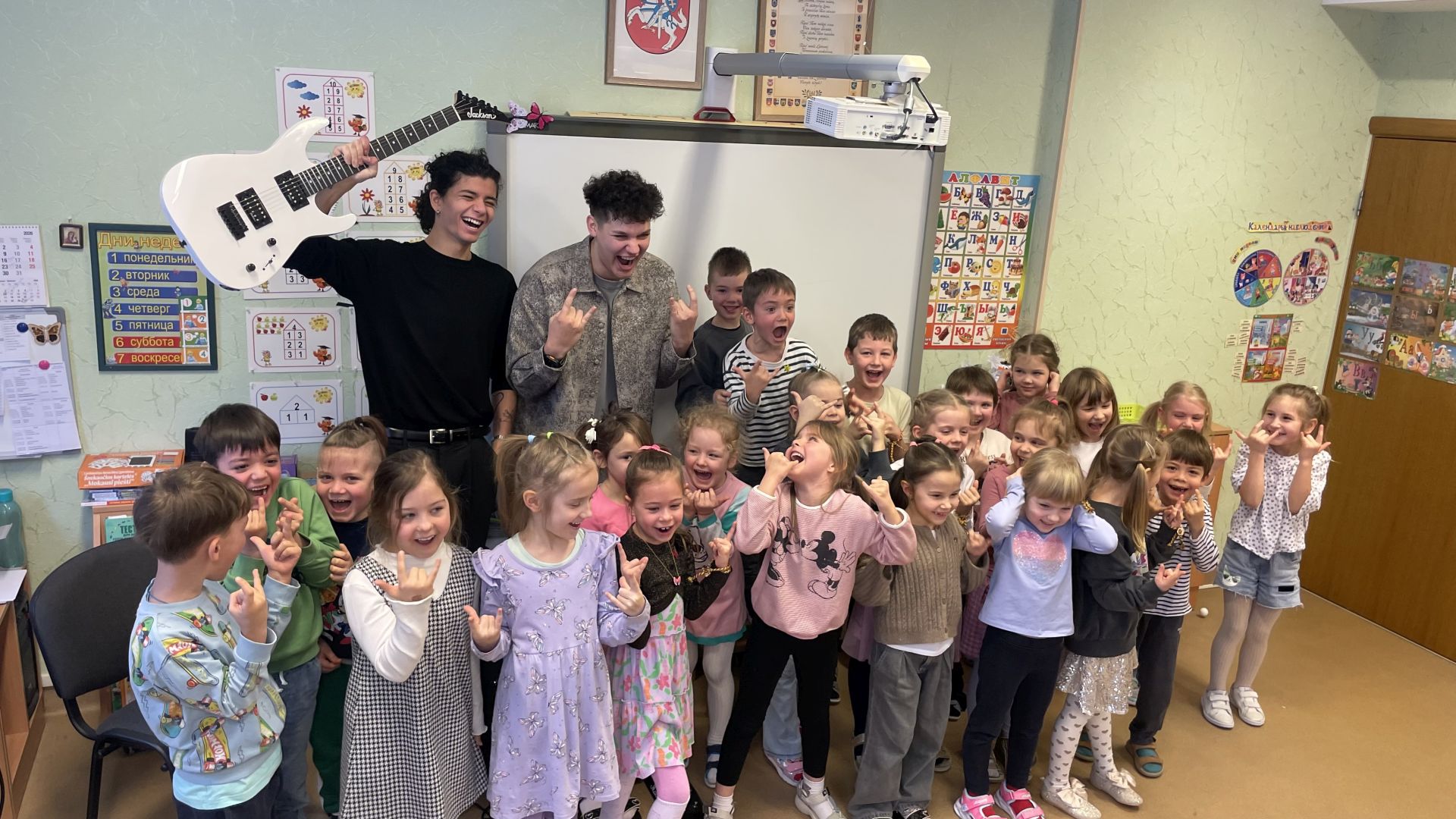Darželio grupėse vyko neįprasta veikla, skirta draugystei, pagarbai ir geranoriškumui. Į svečius pas vaikus atėjo ne šiaip pedagogai, o tikri Fiksikai — socialinė pedagogė Julija ir specialioji pedagogė Marija, įsikūnijusios į mylimus personažus ir pasakojo vaikams, kaip svarbu būti gerais, padėti vieni kitiems ir spręsti nesutarimus be pykčio ir įžeidimų. Vaikai su dideliu susidomėjimu dalyvavo pokalbyje, dalijosi savo patirtimis ir mokėsi tinkamai reaguoti į sudėtingas situacijas. Linksmas šokis „Draugystė“ padėjo vaikams pajusti judesio ir bendrystės džiaugsmą, o žaidimas „Komplimentas draugui“ leido suprasti, kaip smagu sakyti gražius žodžius ir džiaugtis kitų sėkme. Pabaigai Fiksikai pakvietė visus į kūrybinį nuotykį – piešimą pirštukais! Kartu su vaikai sukūrė spalvingą paveikslą, simbolizuojantį draugystę, taiką ir gerumą. Malonūs žodžiai, šypsenos ir draugystė daro mūsų pasaulį geresniu!